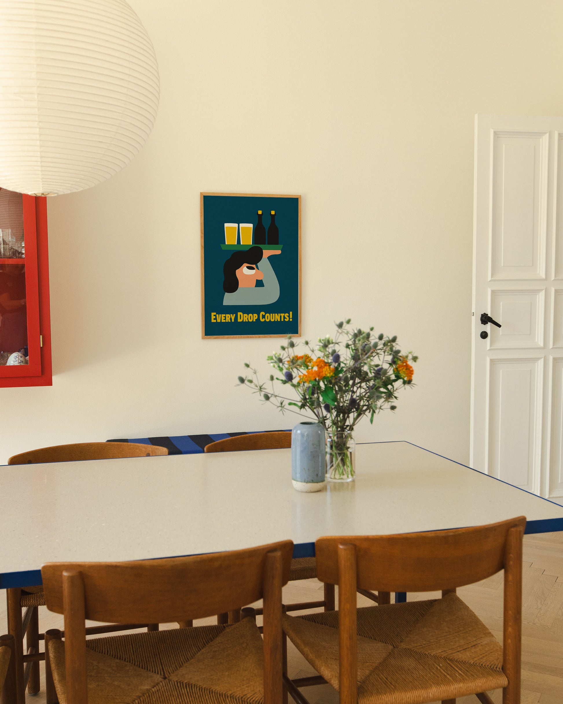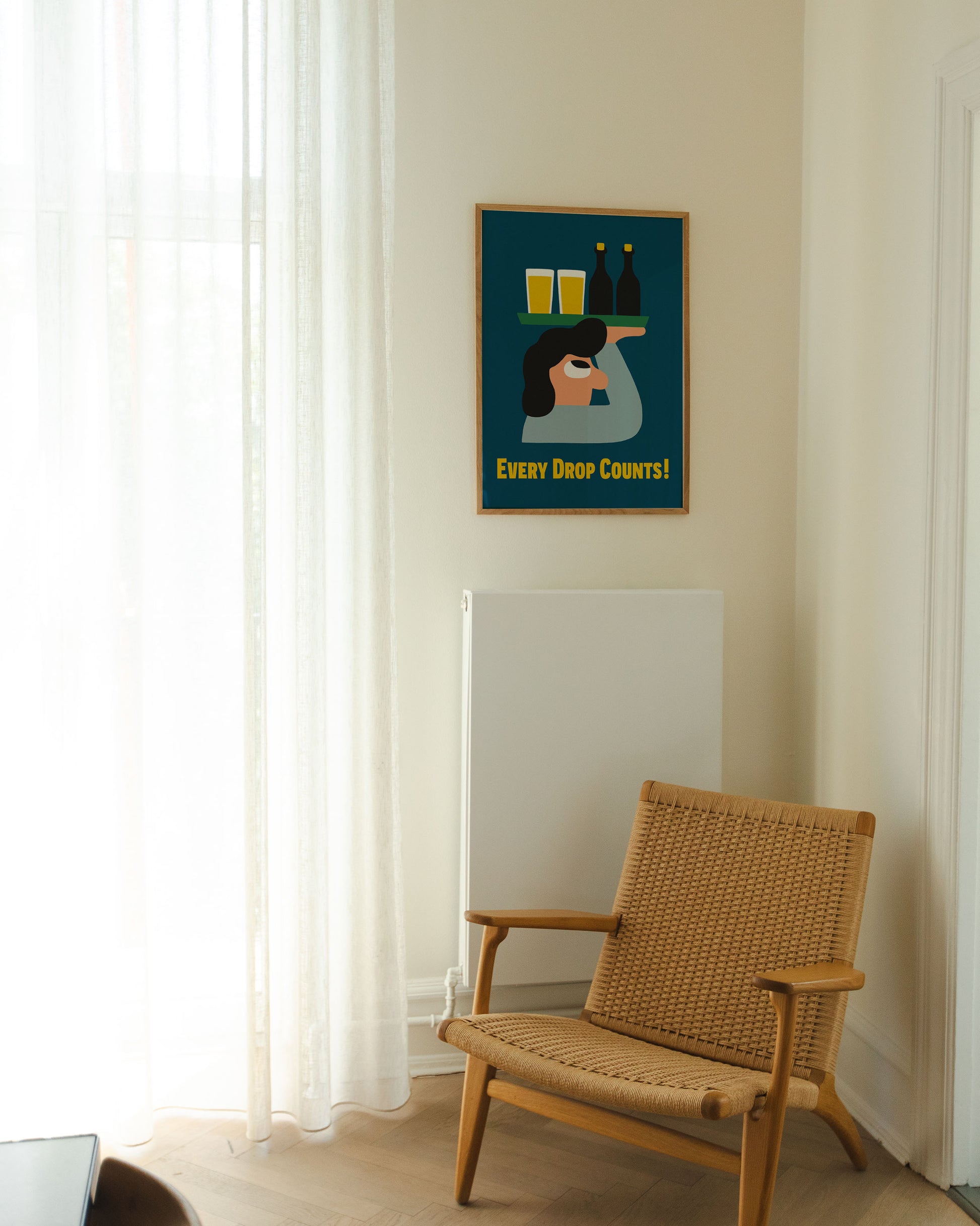 Here is the poster "Every Drop Counts Sally - Blue" which is based on Mikkeller's beer labels and artistic graphic universe.