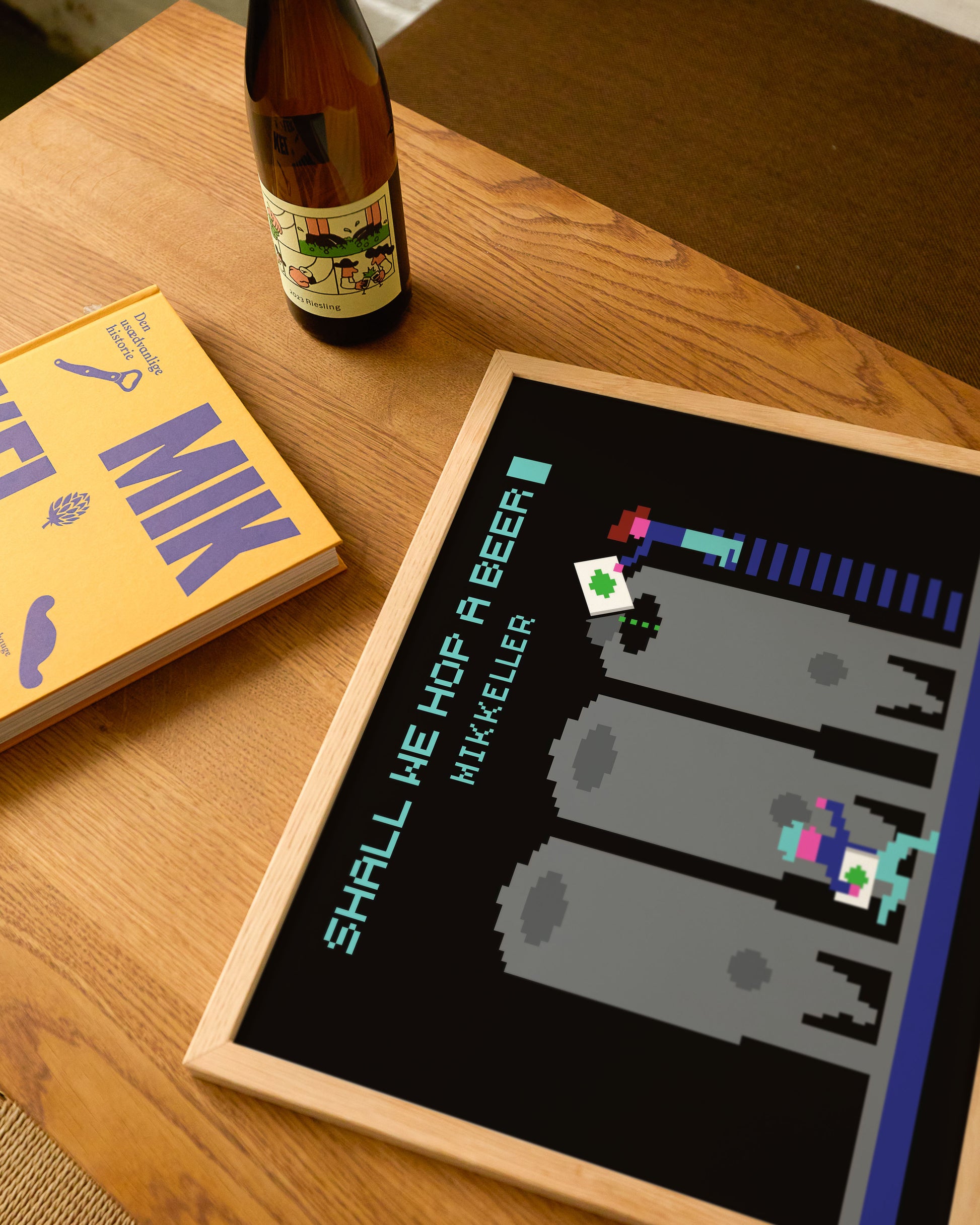 Here is the poster "Shall We Hop A Beer" which is based on Mikkeller's beer labels and artistic graphic universe.
