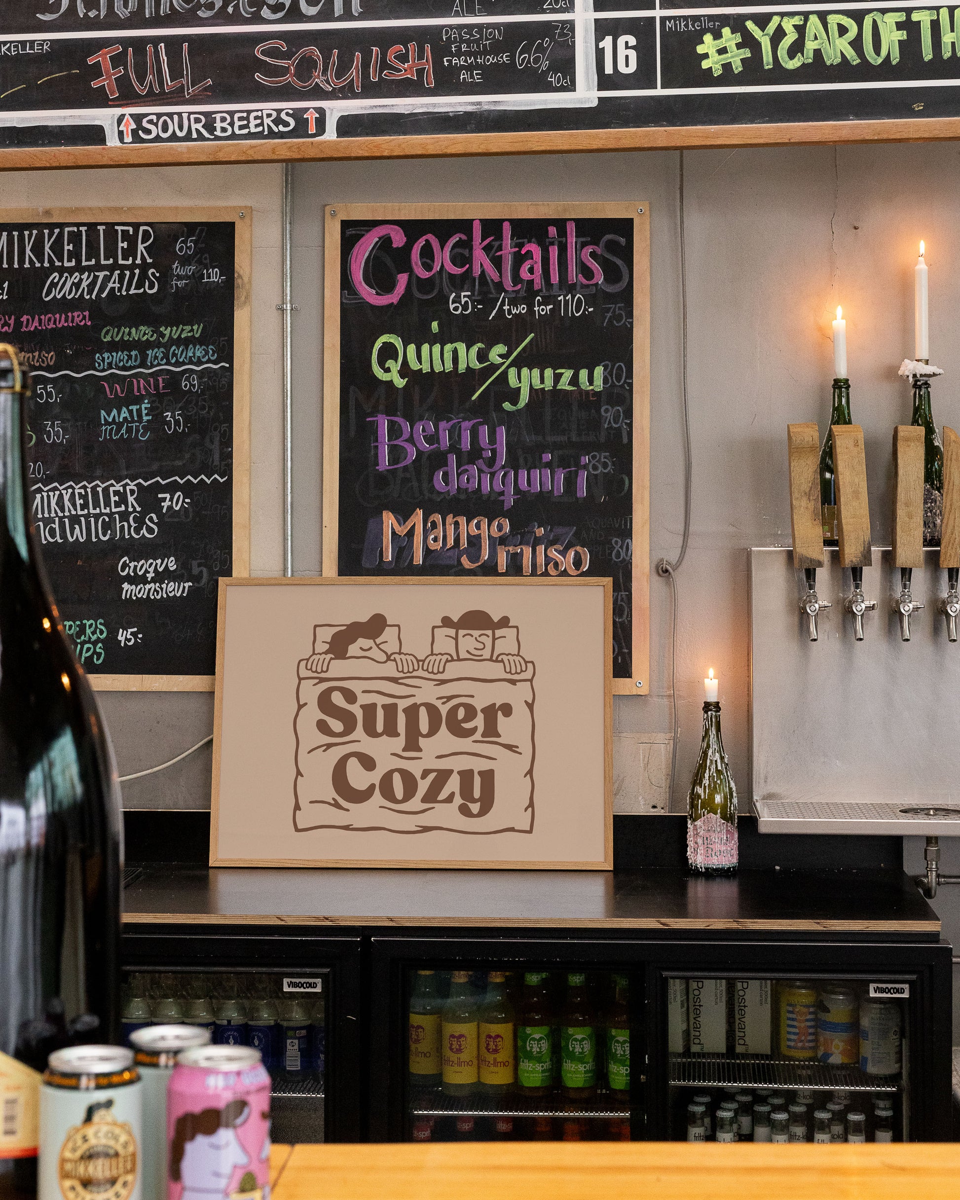 Here is the poster "Super Cozy" based on Mikkeller's beer labels and artistic graphic universe.